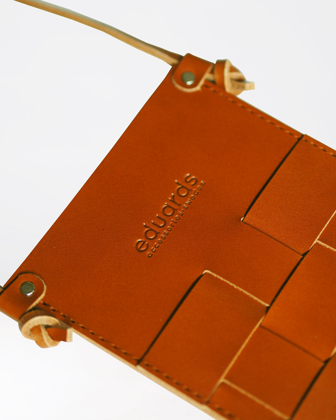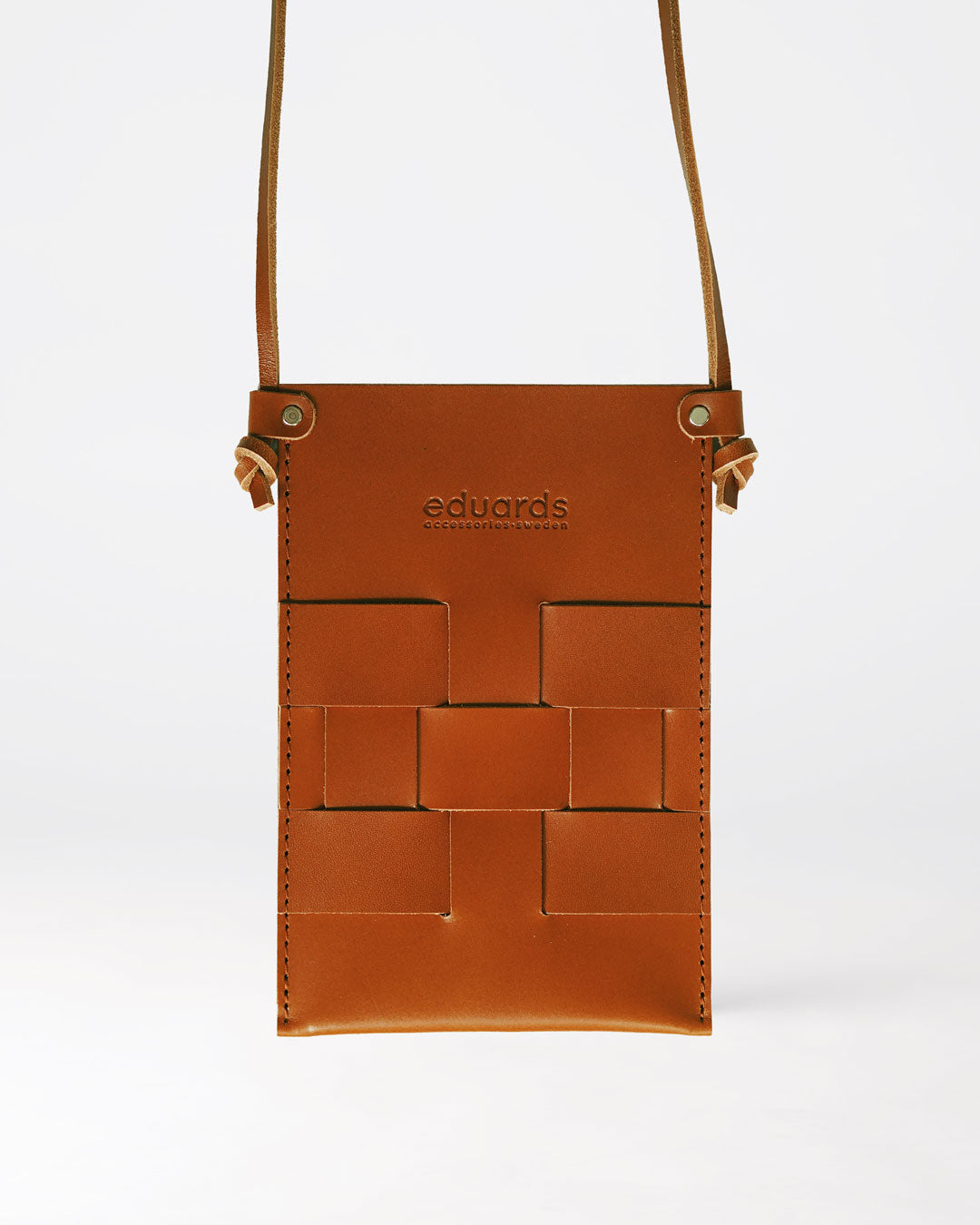 The long, adjustable leather strap allows you to wear it hands-free on the shoulder or crossbody, while removing the strap turns it into a protective case. The front features Eduards’ signature woven leather pattern, inspired by Nordic craft traditions, while the smooth back creates a clean, timeless silhouette. The open design makes it quick and easy to access your essentials. Over time, the leather shapes and develops a patina.